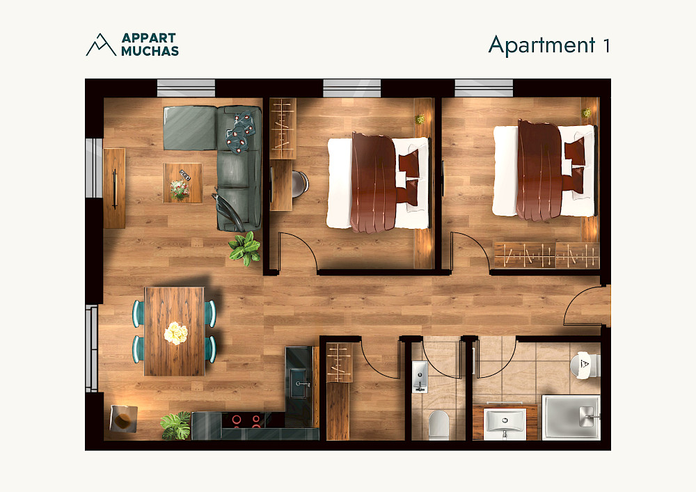 Dieses 65 m² große Apartment verbindet moderne Ausstattung mit Tiroler Gemütlichkeit – perfekt für alle, die es unkompliziert und hochwertig mögen. Drei Räume, eine große Terrasse und viele liebevolle Details machen es zu deinem persönlichen Hideaway in den Bergen.