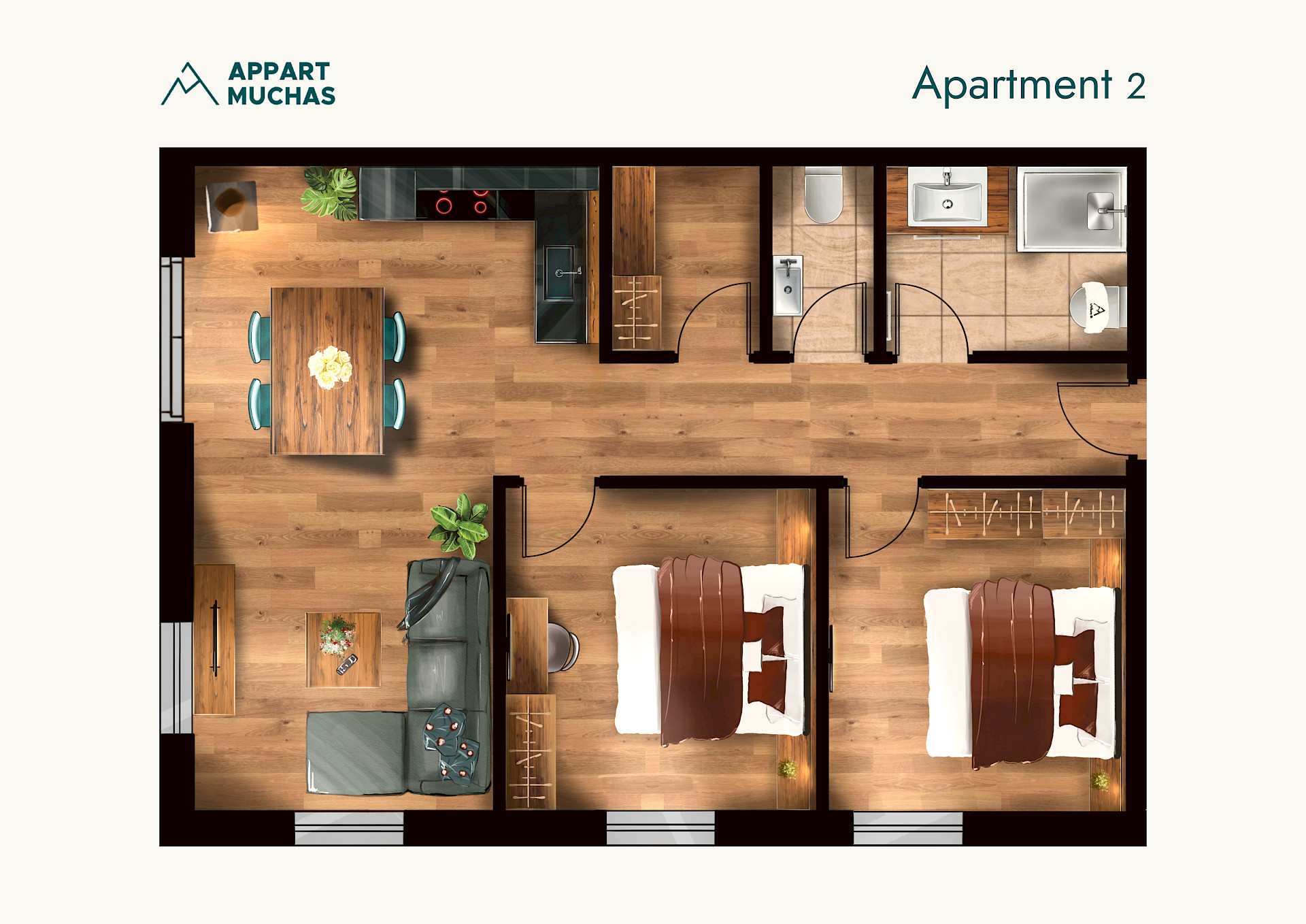 Dieses liebevoll eingerichtete Apartment bietet auf 65 m² alles, was du für erholsame Tage in Tirol brauchst. Viel Licht, viel Ruhe und eine eigene Terrasse mit Blick auf die Berge – ideal zum Durchatmen, Genießen und Zeit zu zweit.